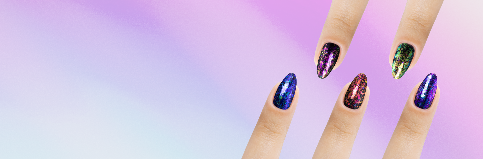The ethereal allure of PRECIOUS FLAKES makes them a marvelous choice for manicures whose beauty can outreach any stretch of imagination. Because they are semi-translucent, each individual colour scheme takes on surprisingly varied hues depending on which gel polish you use as a base.