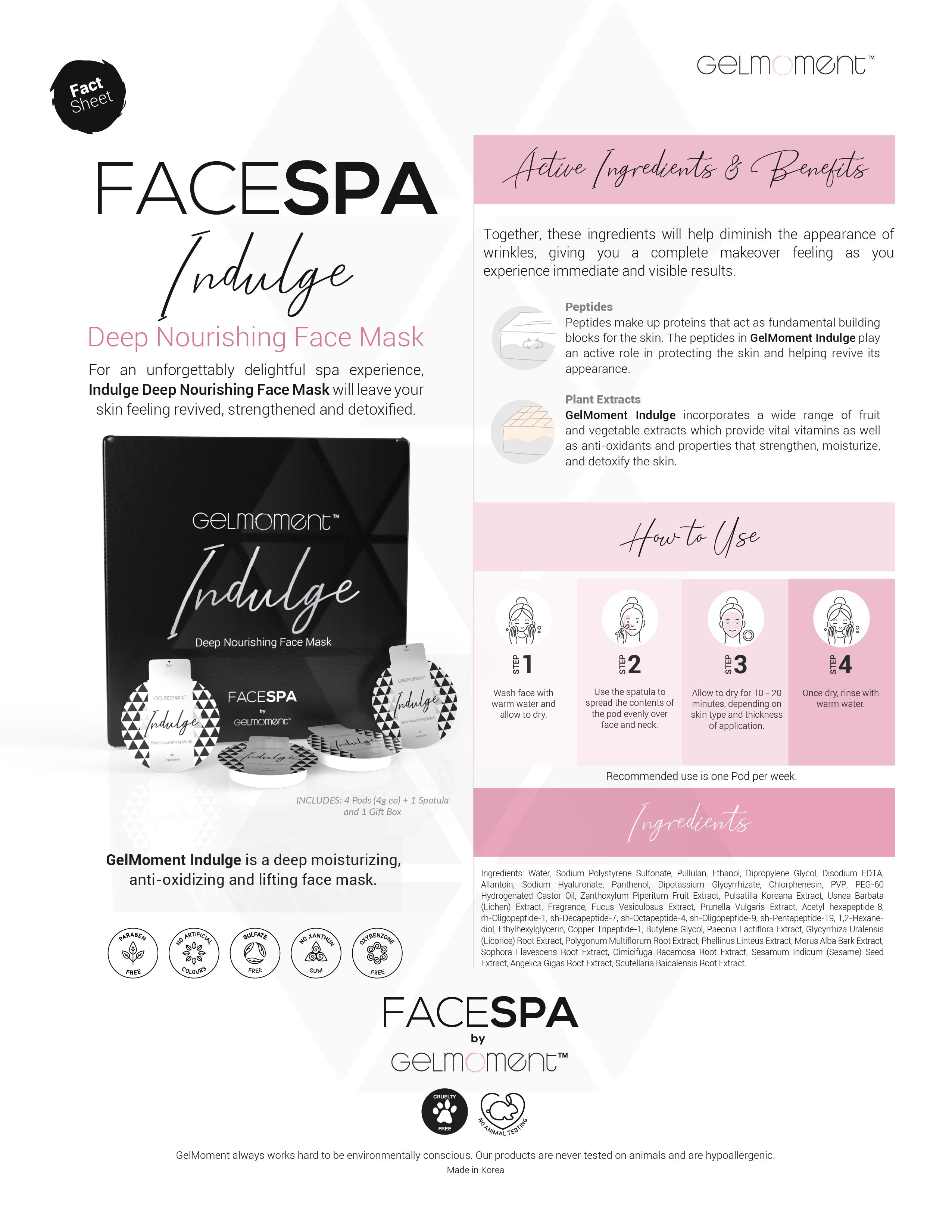 For an unforgettably delightful spa experience, this lifting mask will leave your skin feeling revived, strengthened and detoxified. Its combination of peptides and plant extracts will give you makeover-quality results that last.