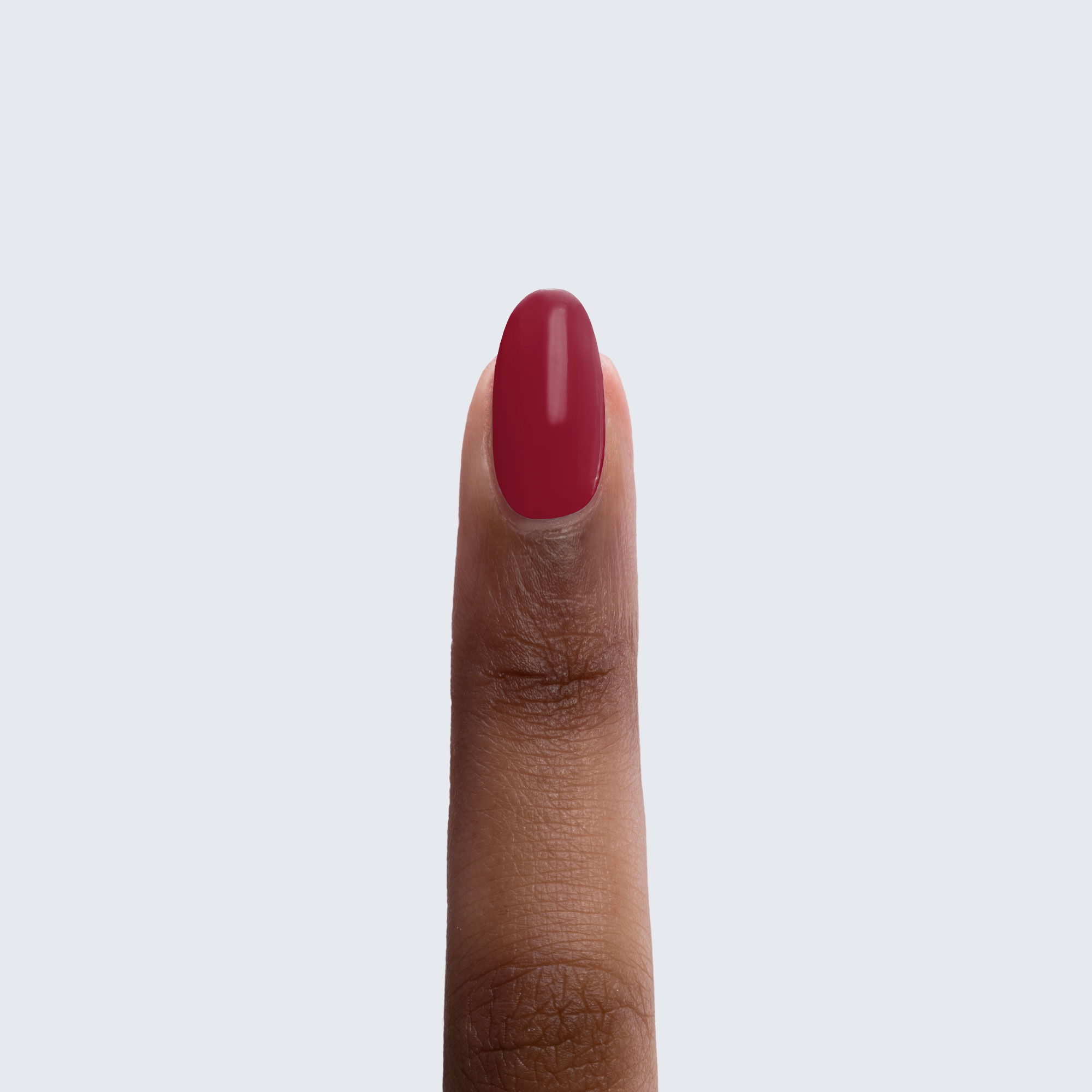 True burgundy. Dark. Opaque. Warm undertone.